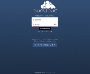 あとはブラウザからsetup-owncloud.phpにアクセスし、画面表示を見ながら進めていきます。